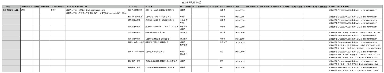 - フローをCSVファイルとしてダウンロードできるのは、ビジネスプラン以上のアカウント、またはオプション追加でご利用いただだけます。
